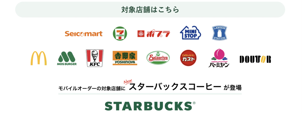 モバイルオーダーが条件- カード現物の差し込み決済やiD決済などは対象外